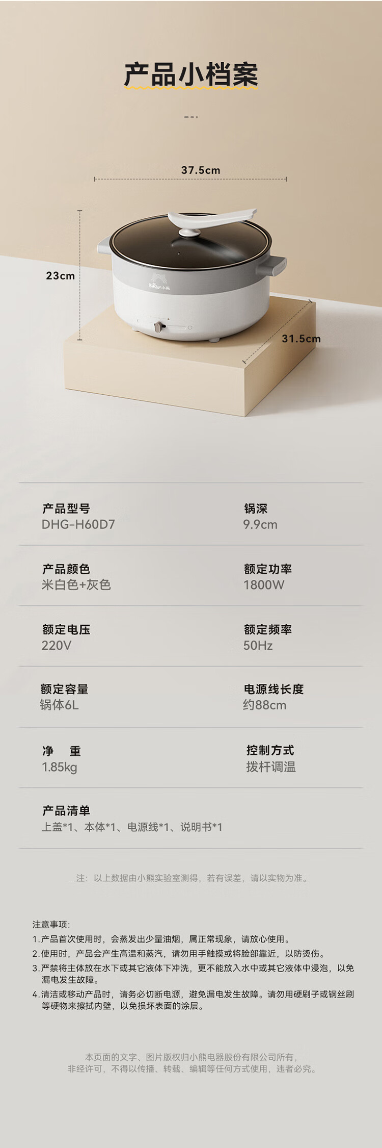 小熊电火锅DHG-H60D7